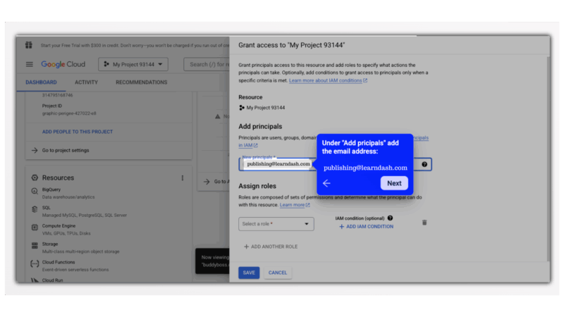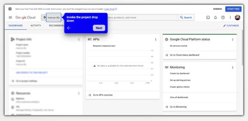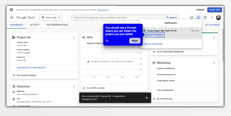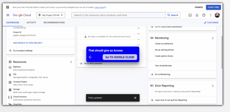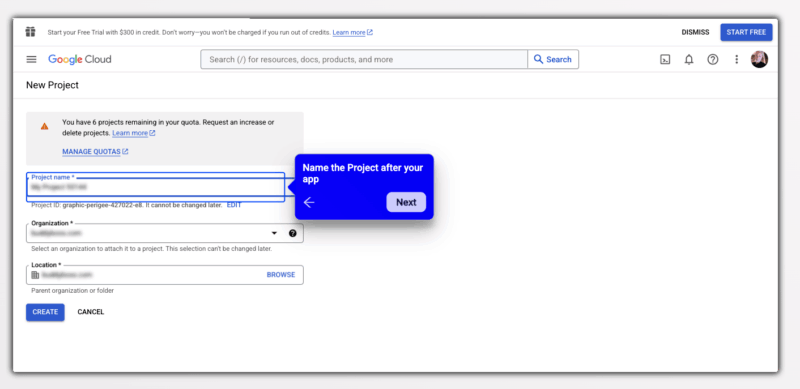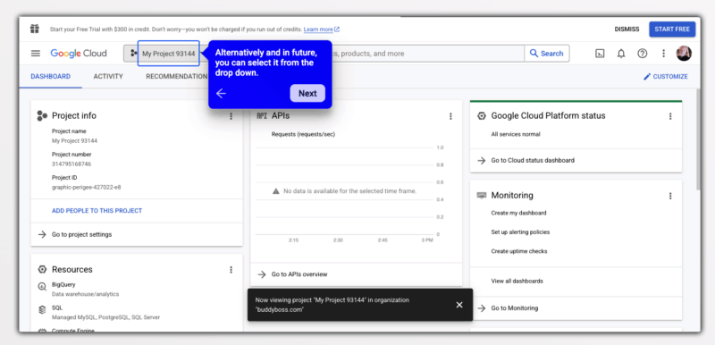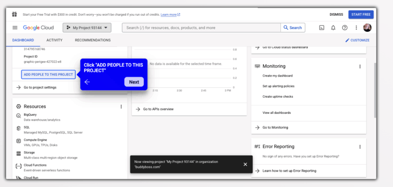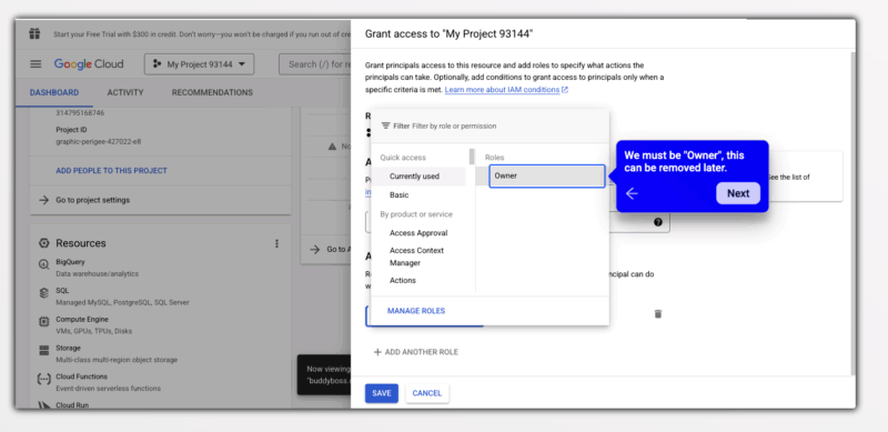 IF YOUR CLOUD PROJECT ALREADY EXISTED, PLEASE BE SURE YOU ARE LOGGED IN AS THE USER WHO CREATED THE ORGANIZATION.