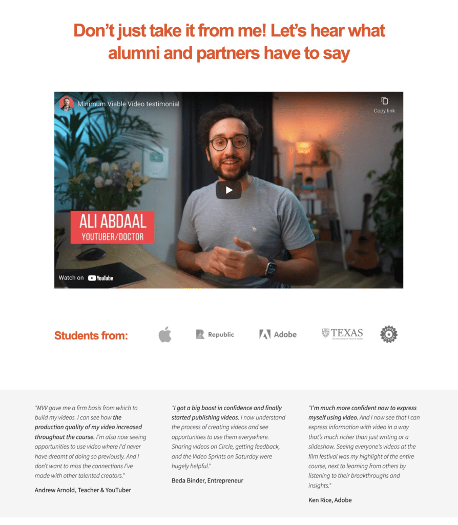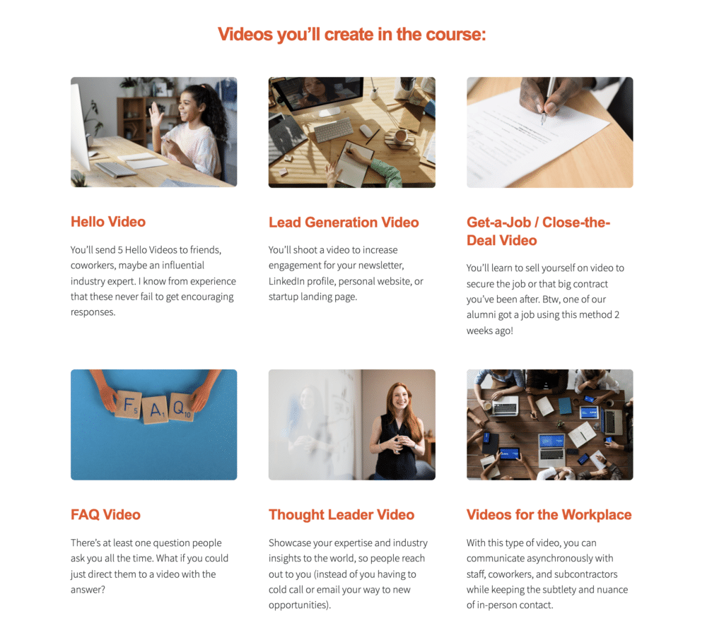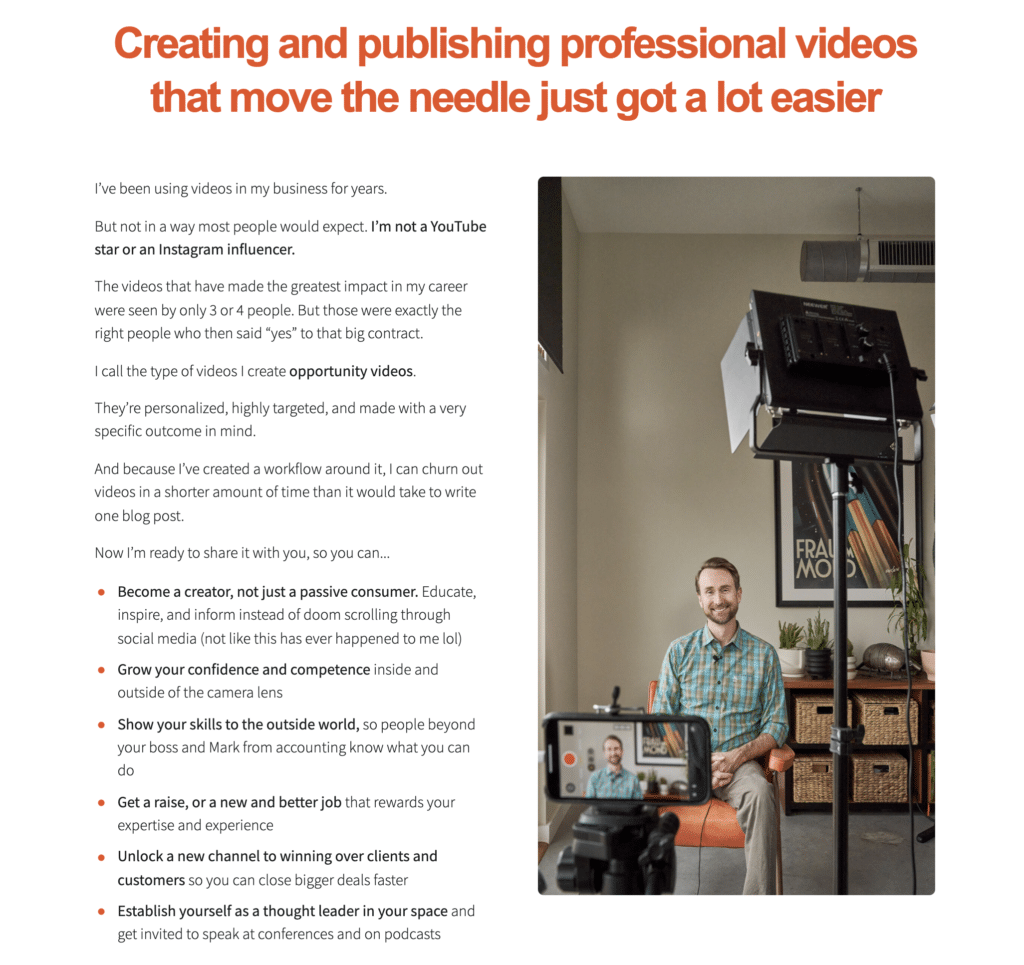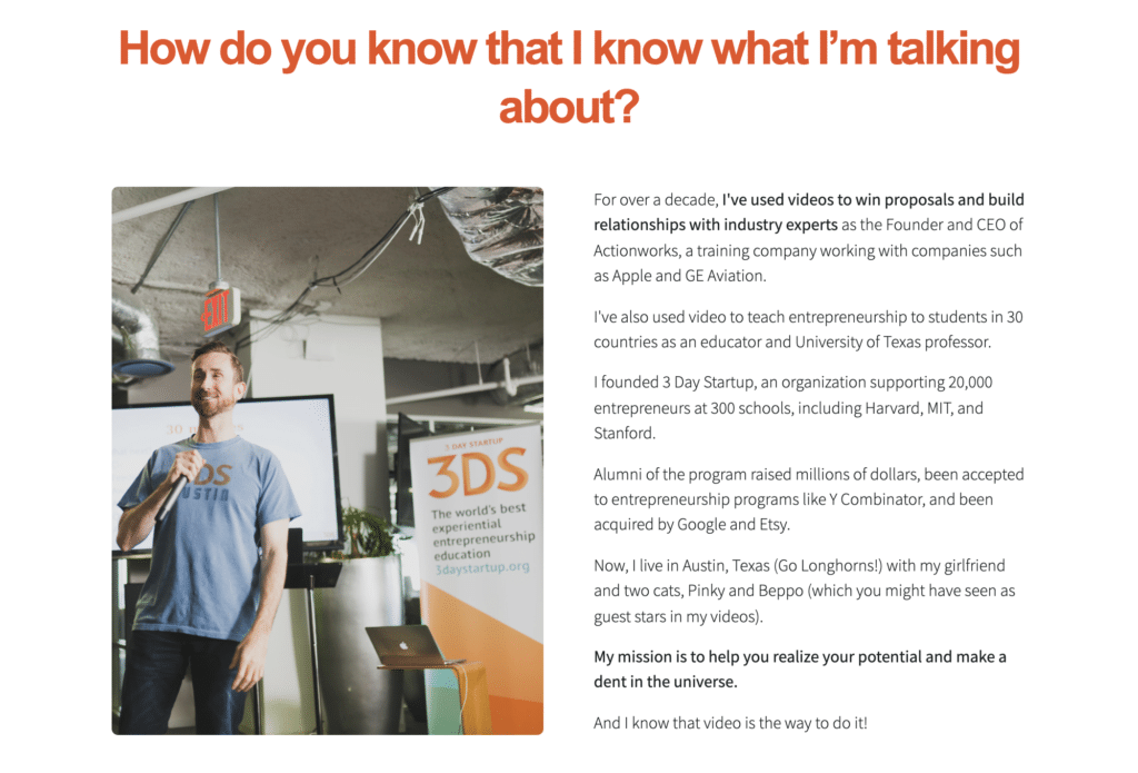 If you’re selling your online course with a sales page, one of the hardest parts you’ll likely have is the “talking about yourself” part. But this intro is done really well because it’s not the “about me” kind of section. Instead, this intro connects you to a real person, highlights that they know what they’re doing, and connects you (again) to the benefits / results that this course offers.