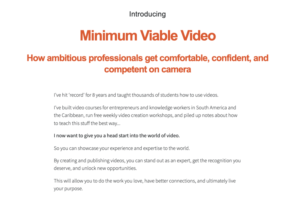 So today I’m going to show you Minimum Viable Video and their sales page.